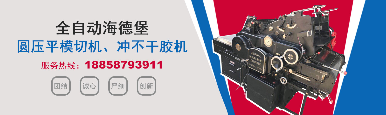 瑞安市恒柯機械廠(www.wzhkjx_com.wsnljxm.cn)是國內專業制造銷售全自動模切機,全自動燙金機,圓壓平模切機,圓壓平燙金機,滾筒燙金機,沖不干膠機,海德堡凸印機.銷售的產品系列規格齊全,產品具有速度快,壓力均勻,套印準確等特點。